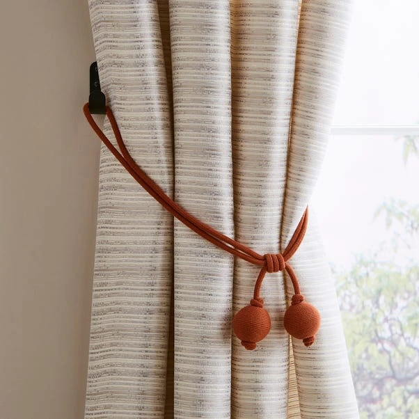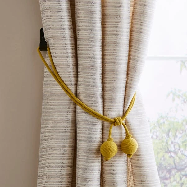 Featuring classic rope detailing with a decorative ball finish, our curtain tieback can add texture and style to your window dressings. Our tieback can be used to keep your curtains open in that traditional silhouette, allowing more light to enter your room. These Elements Ball Tiebacks are available in a choice of bold colourways.
