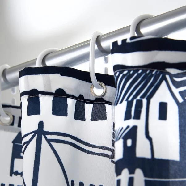 Bring the seaside to your bathroom with this Elements Coastal Boats Shower Curtain. The nautical design is dark blue on white and would be the perfect addition to a coastal theme. This curtain is easy to clean: just pop it in the washing machine and line dry to keep it fresh. It can also be ironed on a cool setting for a crisp look.