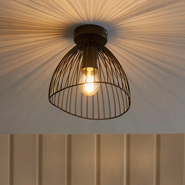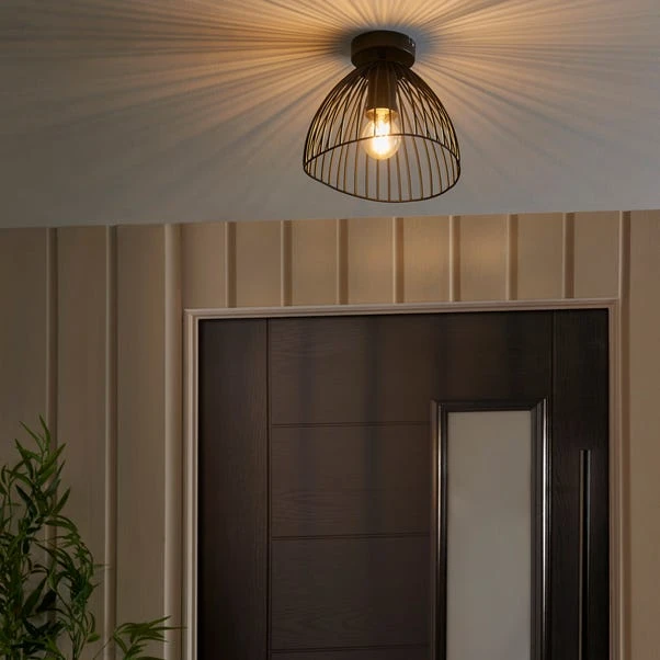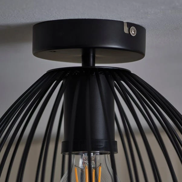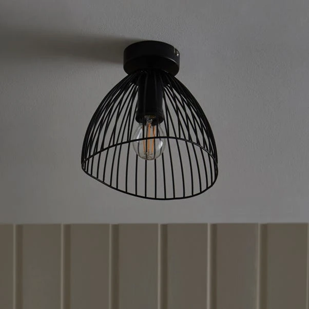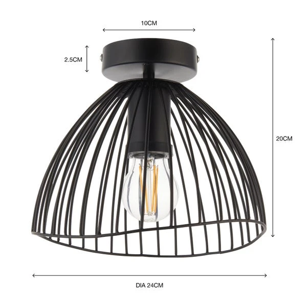 This black wire flush ceiling fixture adds a touch of sleek elegance to any space. Its dimmable feature allows you to create the perfect ambience, tailored to your preference. Designed for both indoor and outdoor use, it offers versatility and style. Complete the cohesive look by exploring our range of matching family items, available to purchase separately.